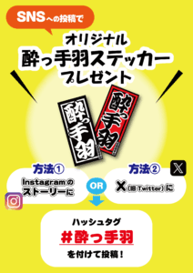 XもしくはInstagramにて、ハッシュタグ #酔っ手羽 をつけて感想をポスト