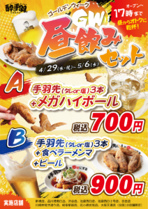 GW限定で酔っ手羽「昼飲みセット」が登場します。