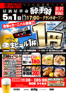 日時:2026年5月1日(金)17:00~22:00(営業は24:00まで)